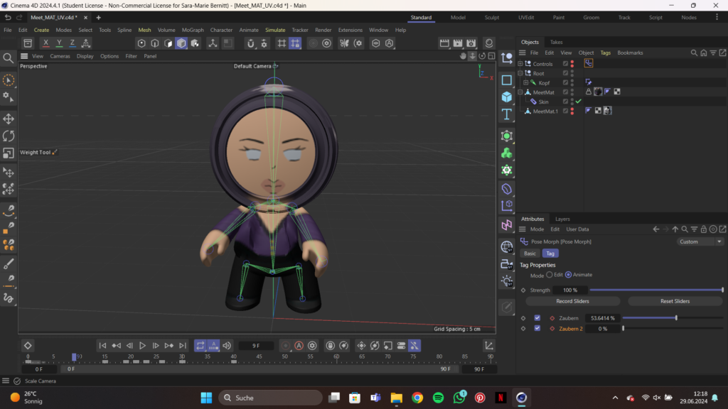 Anhand eines Dinos der uns von dem Dozenten zur Verfügung gestellt wurde, haben wir gelernt, wie Uv´s in Cinema 4D erstellt werden und wie wir sie Texturieren.